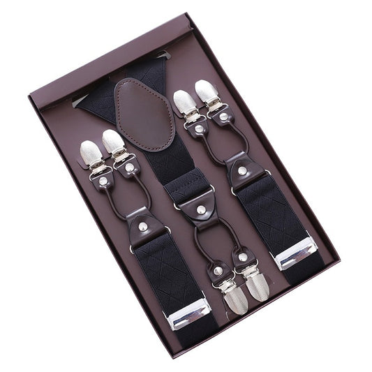 6 Metal Clip Men's Elastic Adjustable Y-Back Suspenders Trouser Braces Strap Belt, Ideal Gift Choice