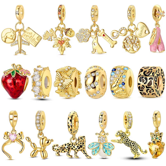 Gold Series Charms Beads 925 Sterling Silver Leopard Original Pendant Fit Bracelet Making Woman Jewelry
