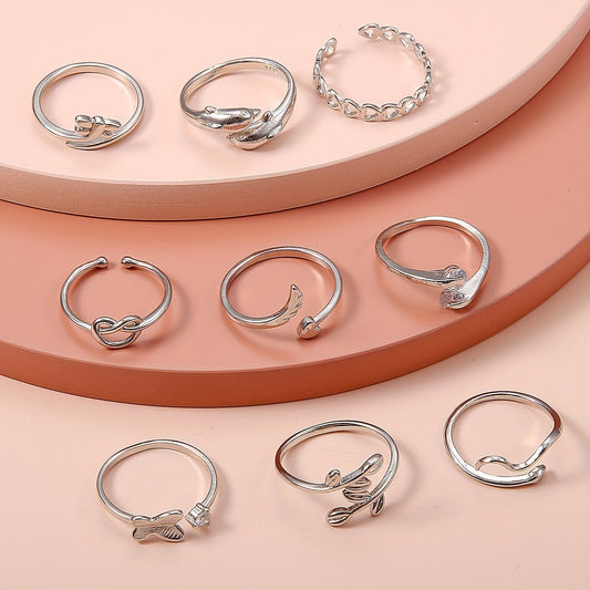 9 PCS Butterfly Open Foot Ring Set Love Geometric Hollow Adjustable Beach Toe Ring