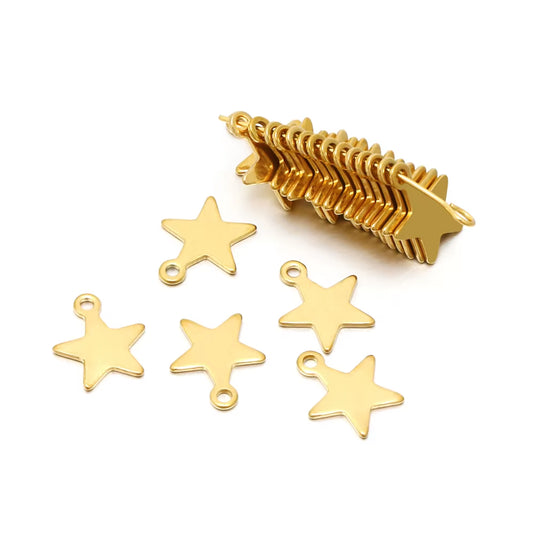 20Pcs Stainless Steel Gold Color Star Flat Charms Pendant Charms for DIY Jewelry Making Bracelet End Tail Charms