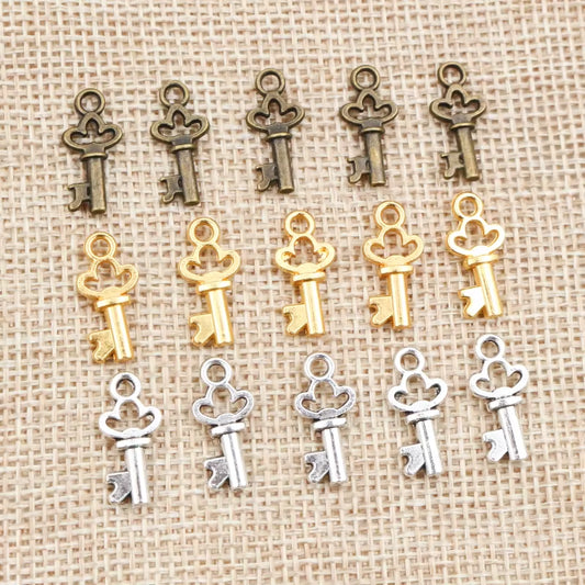 50Pcs 17X7Mm Antique Bronze Gold Silver Plated Key Handmade Charms Pendant DIY for Bracelet Necklace Jewelry Making
