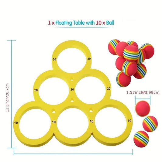 1 Floating Table with 10 Balls, Floating Toy Ring, Throwing Game, Water Sports EVA Throwing Circle, Water Toy EVA