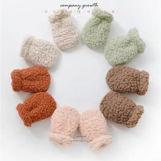 1 Pair Warm Furry Baby Glove for Boy Girl Simplicity Solid Color Toddler Mittens Autumn Winter Thicken Plush Newborn Glove