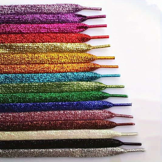 1 Pair Glitter Colorful Fashion Sneakers Flat Shoelaces Shoestrings for Sneakers Skates Sport Shoes Boots