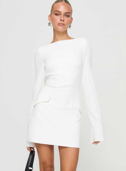 Yelsie Off Shoulder Long Sleeve Mini Dress Cream