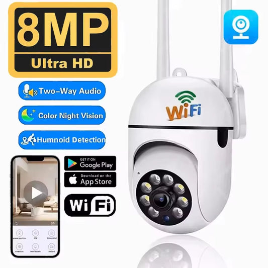 8MP Wifi Security Camera 2.4G Home Surveillance with PTZ IR Night Vision Motion Detection Child Monitoring 2 Antennas