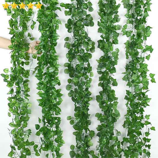 2.1M Artificial Plant Green Ivy Leaf Garland Silk Wall Hanging Vine Home Garden Decoration Wedding Party DIY Fake Wreath Leaves