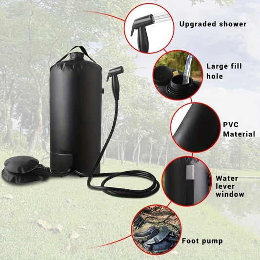 4 Gallon/15L Portable Solar Shower Bag - Water-Resistant Shower for Outdoor Enthusiasts - Beach, Camping, Hiking Trips with Upgraded Screw Cover, Nozzle, Foot Pump, and Easy-to-Use Design
