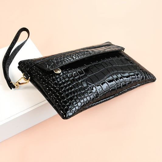 Croc Embossed Clutch Bag, Fashion Faux Leather Crossbody Bag, Women's Coin Purse With Wristlet