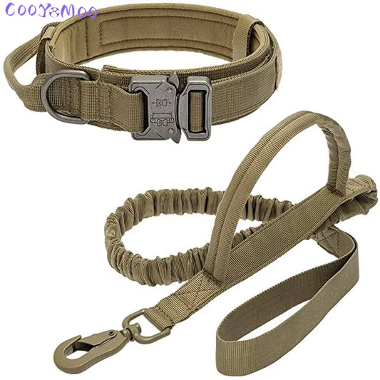 Durable Tactical Dog Collar and Leash Adjustable Military Pet Collar Leash Medium Large Dog German Shepherd Training Accessories
