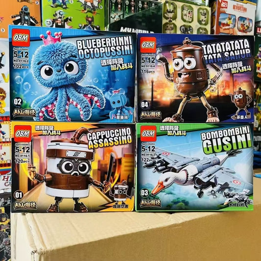 Italian Brainrot Tung Tung Tung Sahur Figure Assembled Toy Tralalero Tralala Boneca Kids Building Blocks Blind Box Toys Gifts