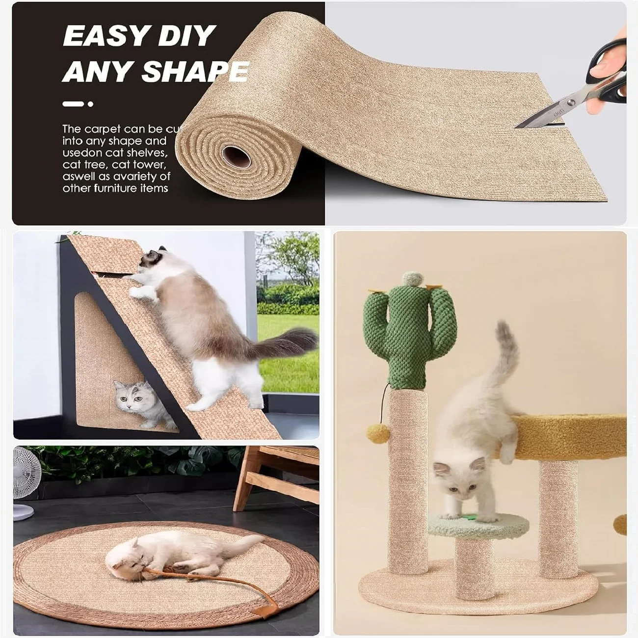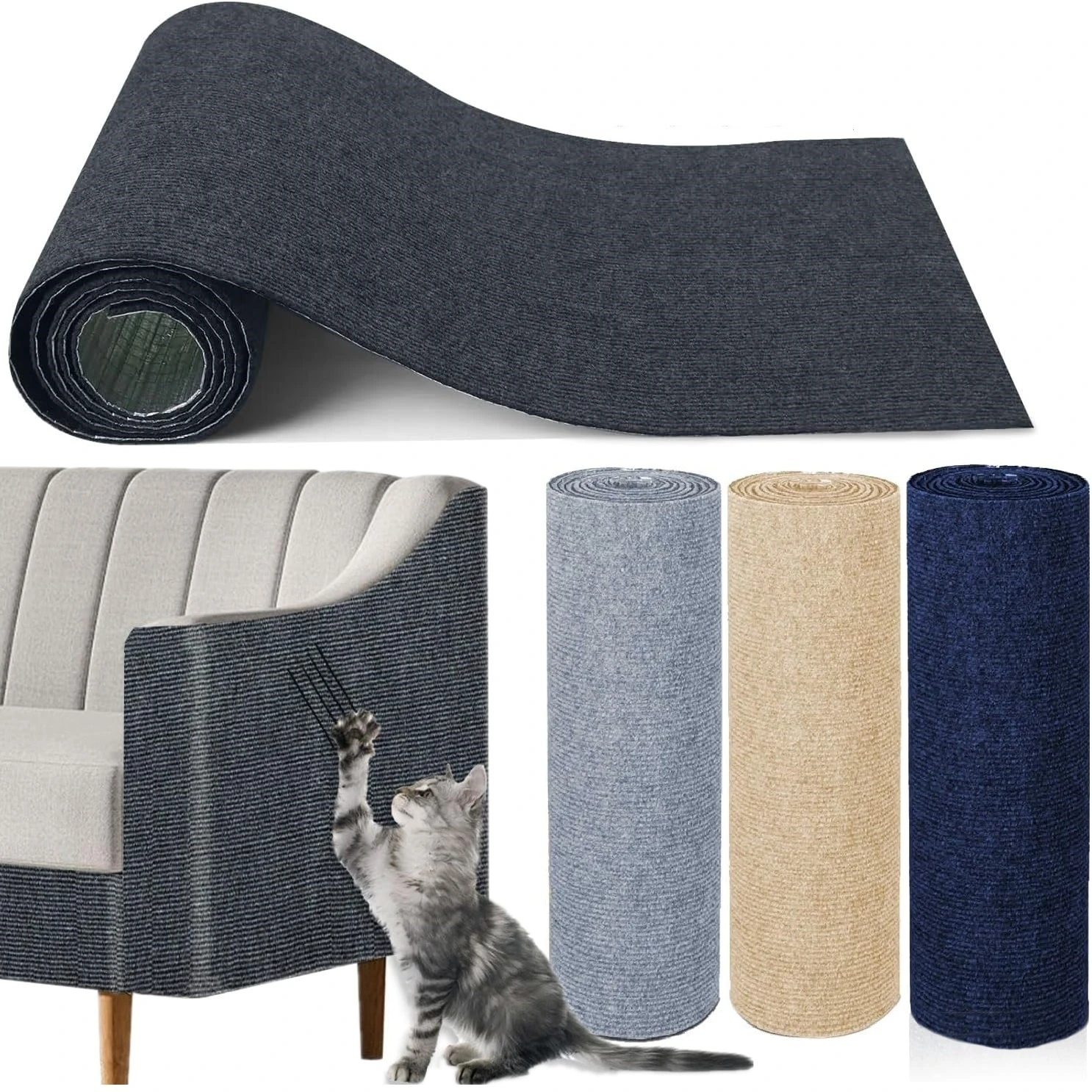 7 Colors Cat Scratcher Sofa Protector Cats Scratcher Pad Board Protection Trimmable Self-adhesive Carpet DIY Cat Scratch Mat