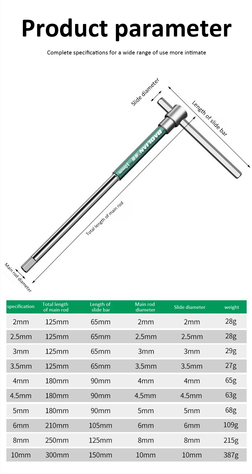 ● 8- piece set:2/ 2.5/3/4/5/6/8/10mm