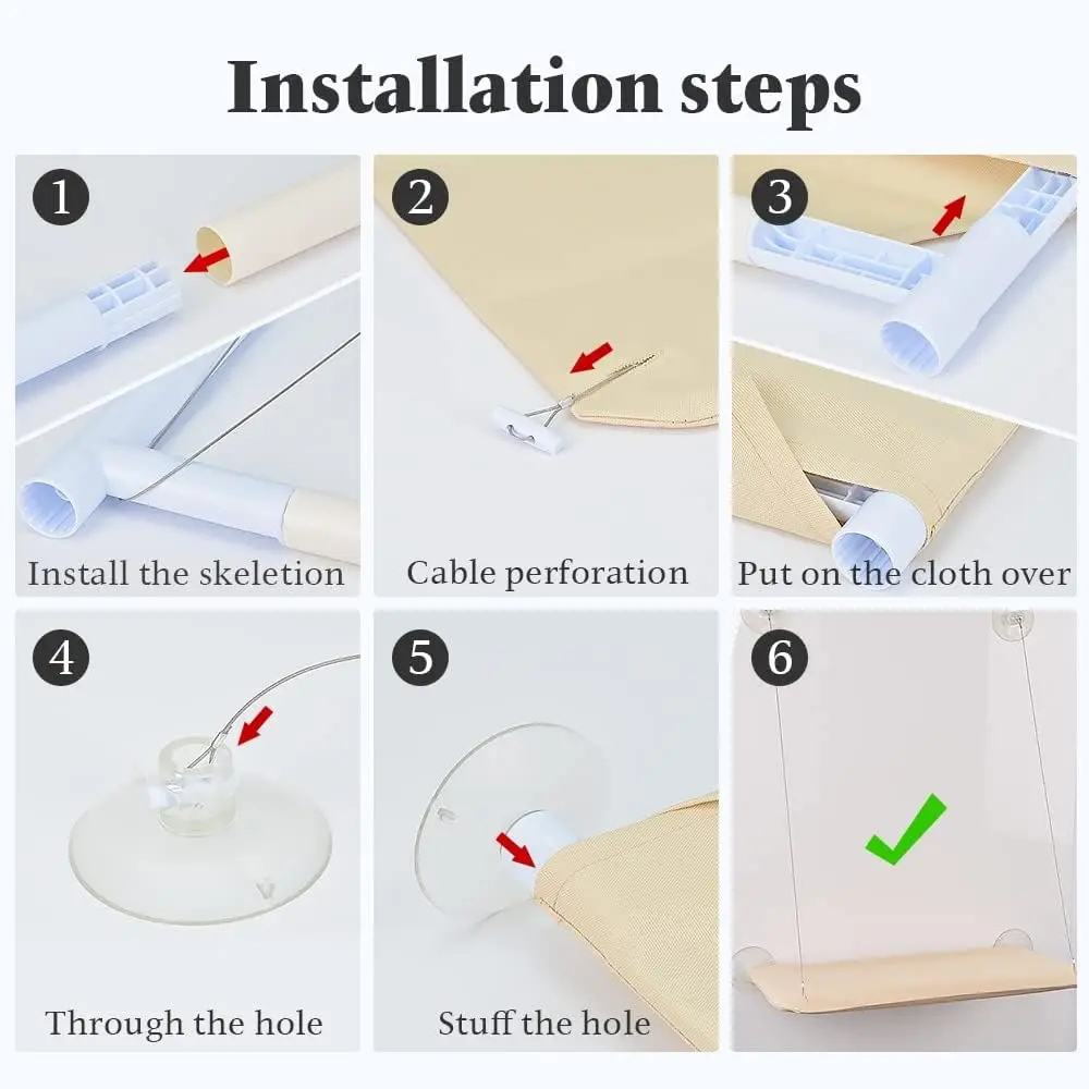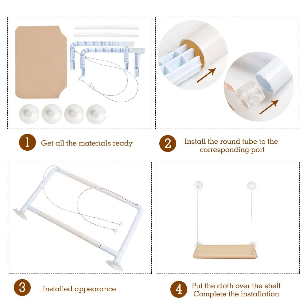 Before using the suction cup, you can soak the suction cup in warm water for a few minutes to increase the stickiness of the suction cup, then wipe it clean, stick it on the window without dirt or grease, and the installation is complete. If you want to change the place and reuse cat hammocks for indoor cats, just remove it and follow the above method again.