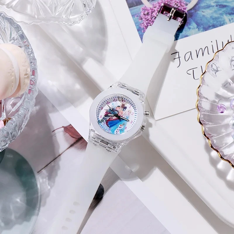 Disney Children Watch Frozen Princess Pattern Led Glowing Flash Fashion Kids Quartz Student Wristwatch Boy Girl Holiday Gifts
