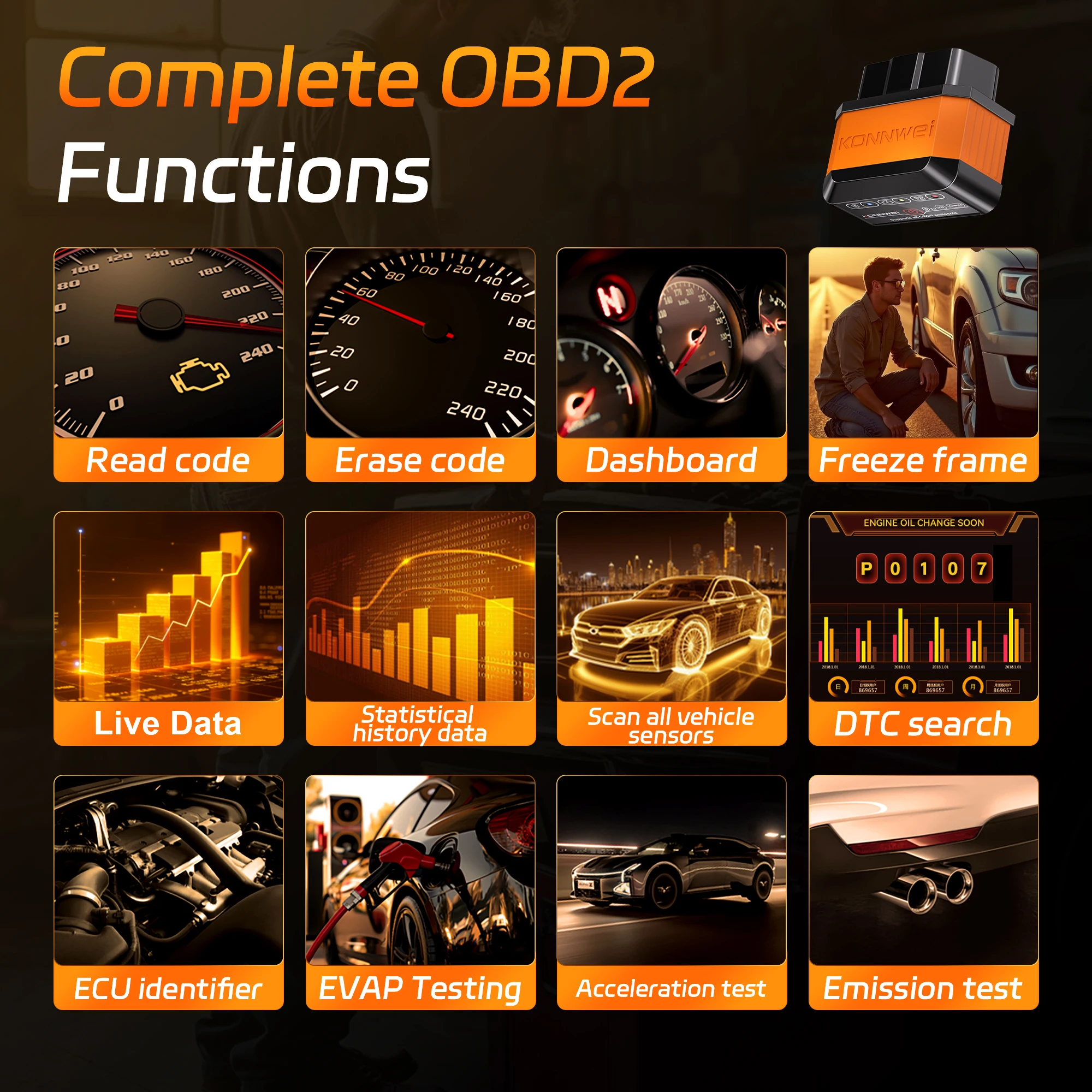 KONNWEI KW905 ELM327 OBD2 Car Scanner Bluetooth 5.0 Engine Fault Scanner Tool OBDII Code Reader Diagnostic Tool for Android/IOS