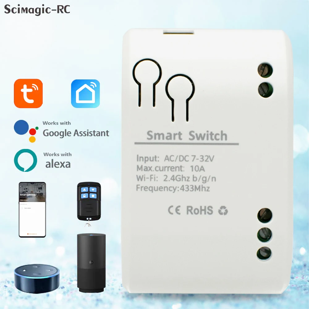 Tuya Smart Remote Control Wireless Wifi Switch Module 7-32V 12V 24V 220V RF Receiver 10A Relay Work with Alexa Google Home