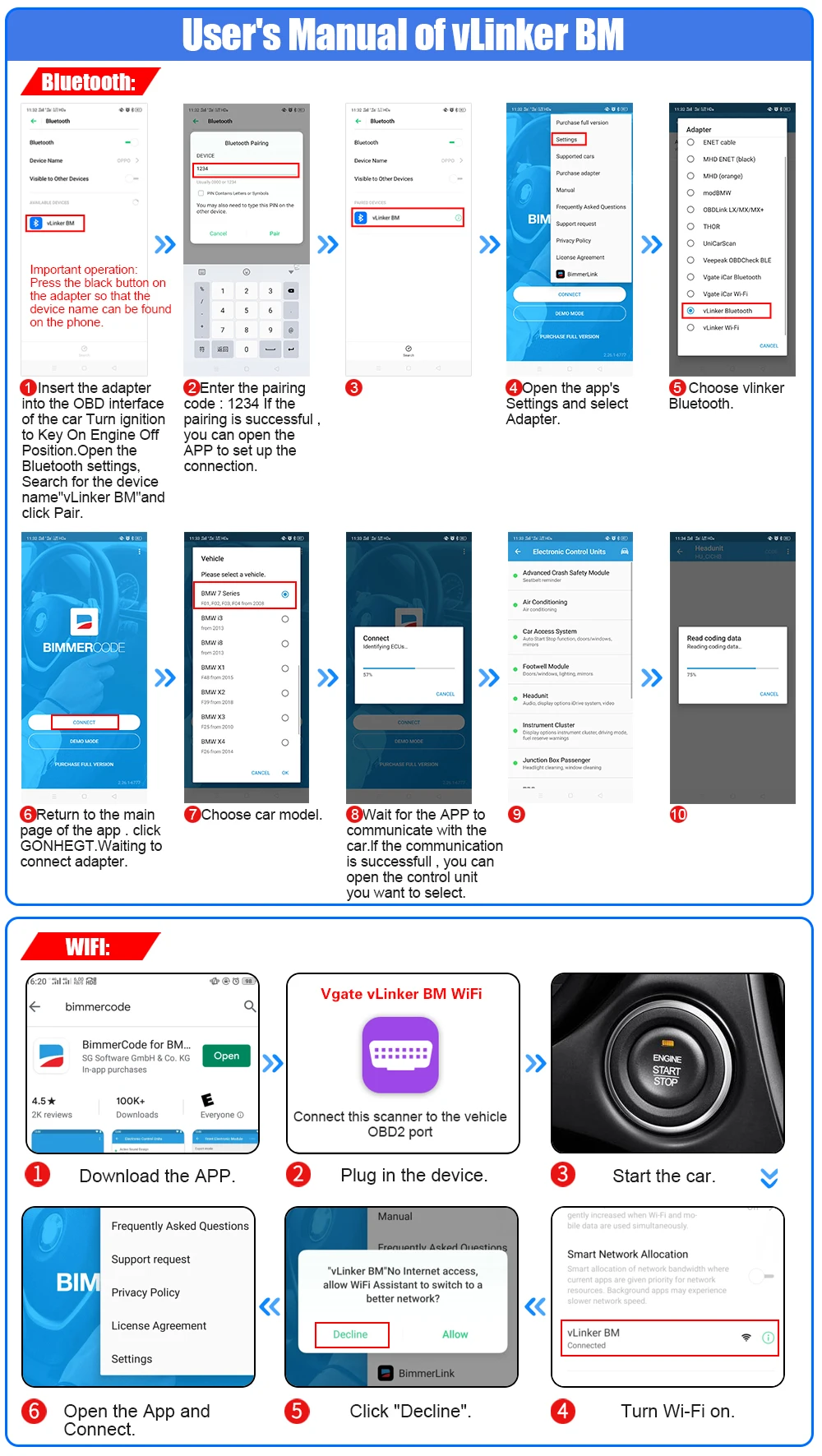 3. vLinker BM is the official recommended adapter for BimmerCode, Perfect compatibility with BimmerCode.
